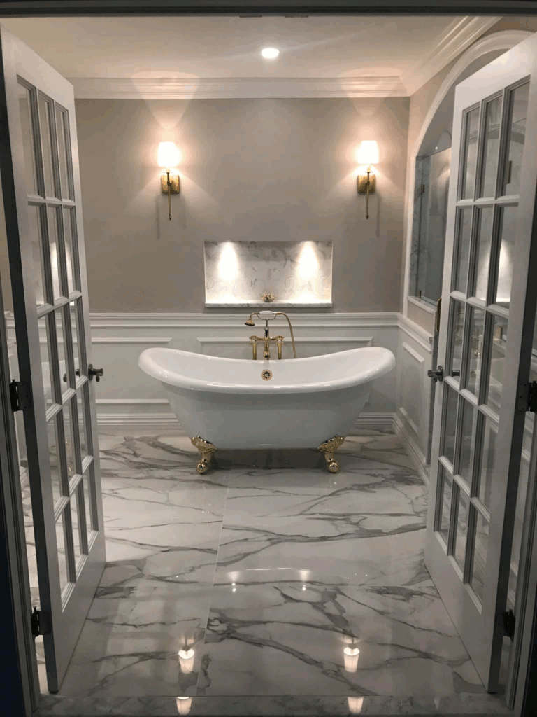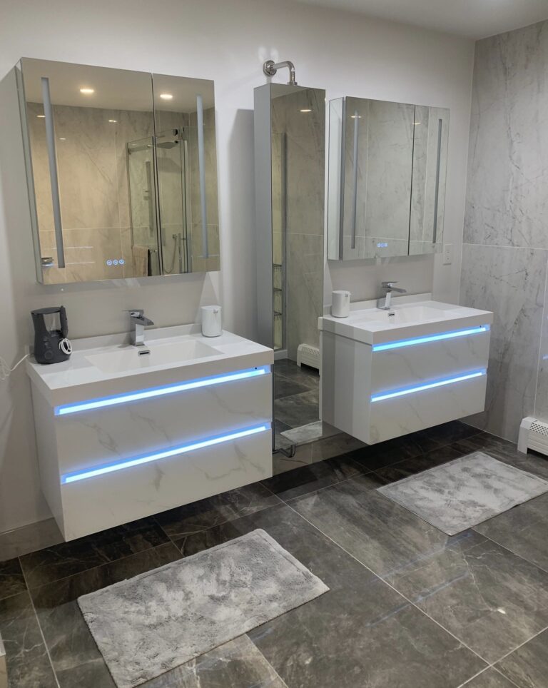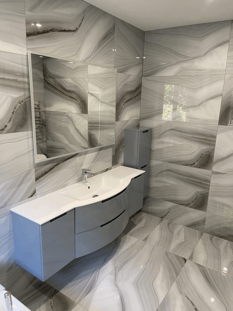 This bathroom transformation aims to blend brightness and tranquility, resulting in a space that feels modern, soothing, and effortlessly comfortable.